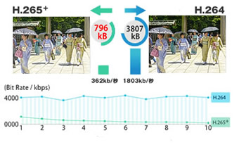 【H.265+で長時間録画】 パノラマネットワークカメラ(AI-820PM)は、最新のビデオ圧縮方式(H.265+/H.265)に対応した、最大800万画素の解像度をサポートした屋外ネットワークカメラです。 高解像度化によるトラフィック増大がネットワークインフラ上における最大のネックでしたが、圧縮効率に優れた最新のH.265+ビデオ圧縮方式をインクルードすることで、ビットレートを最大70%~80%軽減することに成功し、より滑らかで遅延の少ない監視映像を提供します。 【PCシステム要件】