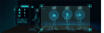 【ヒートマップ機能】 AI-820PMは、顧客の動きや密度を映像上にヒートマップで表示させることが可能です。必要に応じて売り場ごとの空間密度を分析し、ビジネスに活用することが可能です。 |