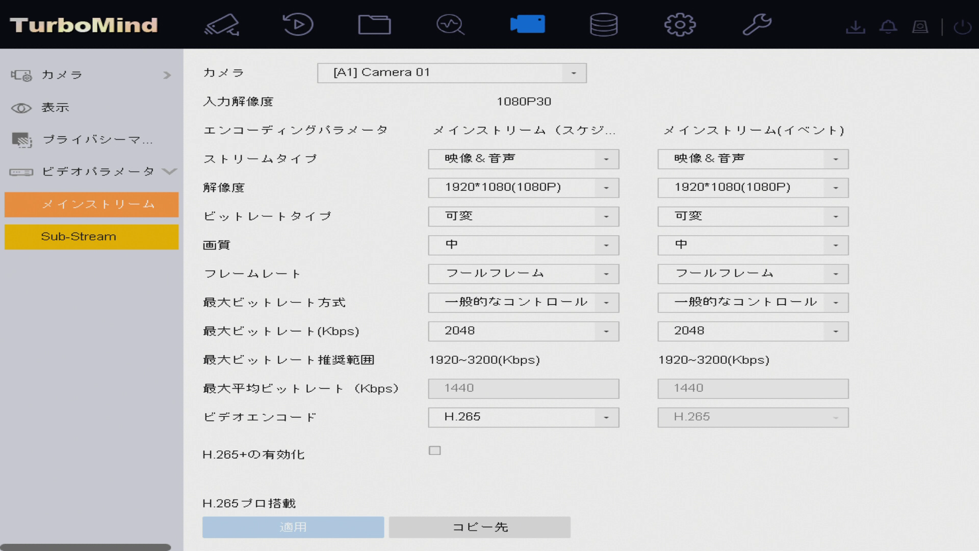 メインストリーム:8MP(8fps)(HD-TVIのみ);5MP(12fps)(HD-TVI/AHDのみ)