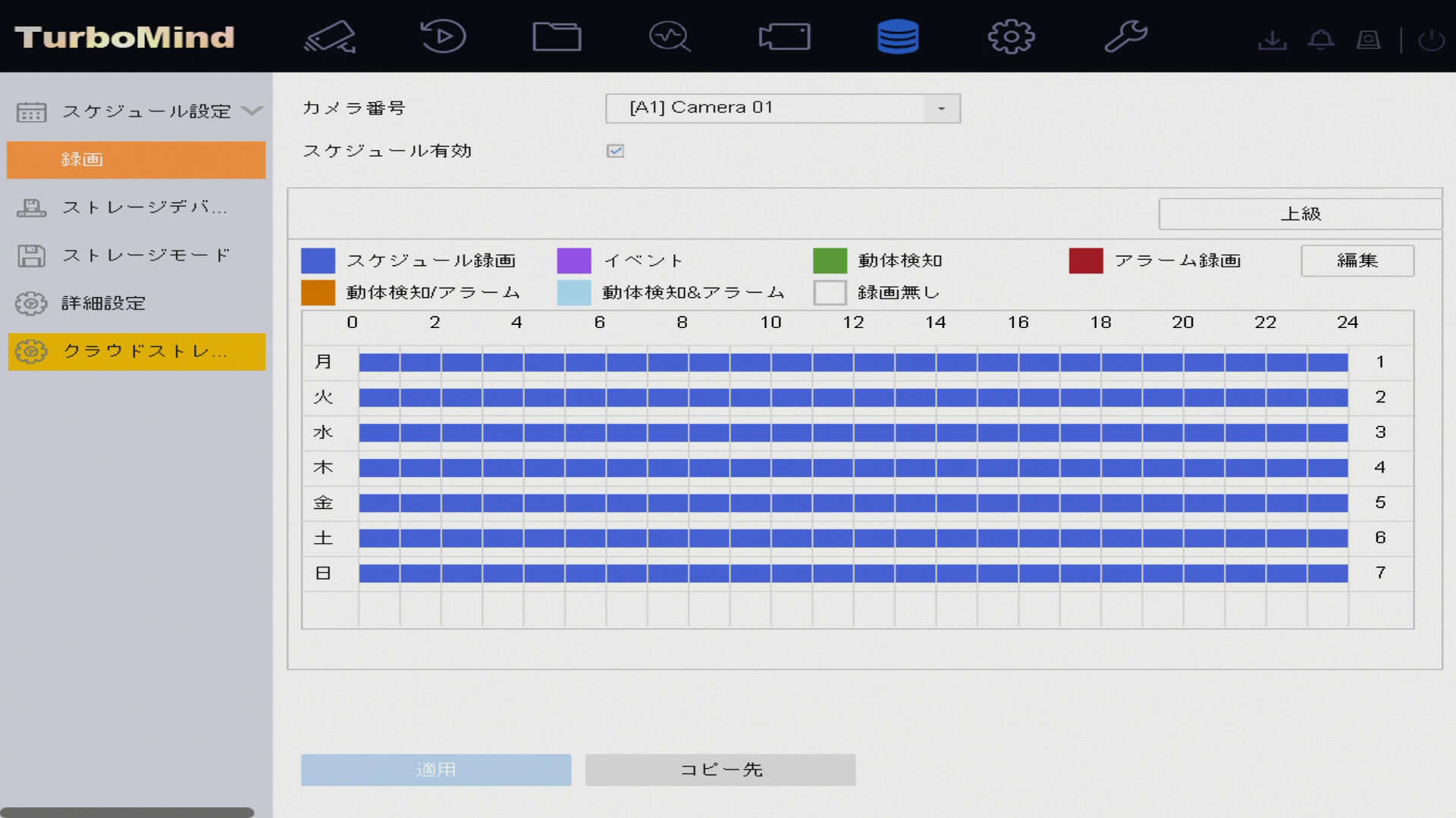手動,スケジュール(常時・モーション・イベント・アラーム) |