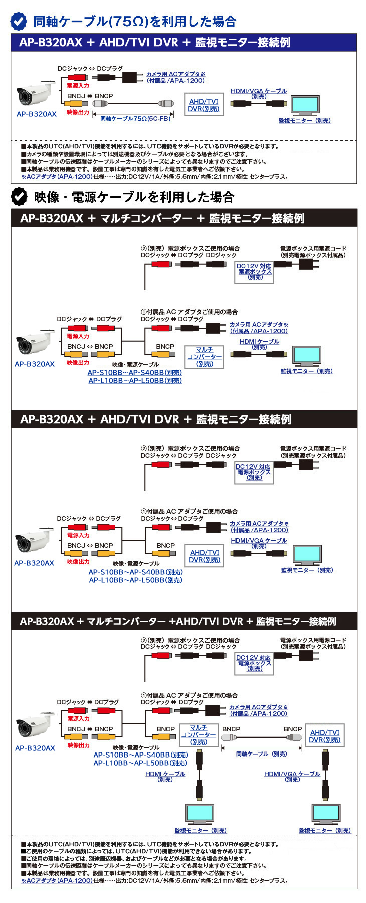 TVI/AHD 電動ズームレンズ搭載 213万画素屋外赤外線防犯カメラ【AP-B320AX】 TVI/AHD 電動ズームレンズ搭載 213万画素屋外赤外線防犯カメラ【AP-B320AX】 TVI/AHD 電動ズームレンズ搭載 213万画素屋外赤外線防犯カメラ【AP-B320AX】 TVI/AHD 電動ズームレンズ搭載 213万画素屋外赤外線防犯カメラ【AP-B320AX】 TVI/AHD 電動ズームレンズ搭載 213万画素屋外赤外線防犯カメラ【AP-B320AX】 監視カメラ用DC12V ACアダプター【APA-1200】 監視カメラ用DC12V ACアダプター【APA-1200】 監視カメラ用DC12V ACアダプター【APA-1200】 監視カメラ用DC12V ACアダプター【APA-1200】 監視カメラ用DC12V ACアダプター【APA-1200】 監視カメラ用DC12V ACアダプター【APA-1200】 防犯カメラ用同軸ケーブル【5C-FB/5C-2V】 防犯カメラ用同軸ケーブル【5C-FB/5C-2V】 防犯カメラ用同軸ケーブル【5C-FB/5C-2V】 TVI/AHD防犯カメラ対応録画機【HD-TVI/AHD DVR一覧】 TVI/AHD防犯カメラ対応録画機【HD-TVI/AHD DVR一覧】 TVI/AHD防犯カメラ対応録画機【HD-TVI/AHD DVR一覧】 【HDMIケーブル】 【HDMIケーブル】 【HDMIケーブル】 【HDMIケーブル】 【HDMIケーブル】 モニター【監視モニター一覧】 モニター【監視モニター一覧 モニター【監視モニター一覧】 モニター【監視モニター一覧】 モニター【監視モニター一覧】 防犯カメラ映像/電源ケーブル【映像・電源ケーブル一覧】 防犯カメラ映像/電源ケーブル【映像・電源ケーブル一覧】 防犯カメラ映像/電源ケーブル【映像・電源ケーブル一覧】 防犯カメラ対応【電源BOX】 防犯カメラ対応【電源BOX】 防犯カメラ対応【電源BOX】 AHD/TVI/CVI/CVBS対応【HDMIマルチコンバーター一覧】 AHD/TVI/CVI/CVBS対応【HDMIマルチコンバーター一覧】