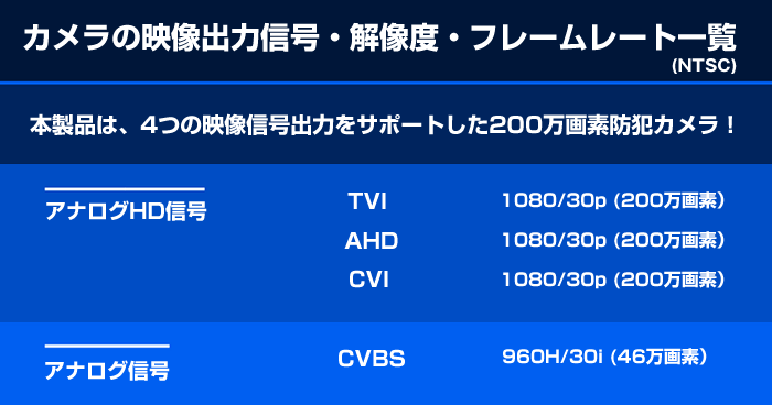 TVI 213万画素防犯カメラ【AP-B324FX】映像出力信号ページTOPへ戻る▲