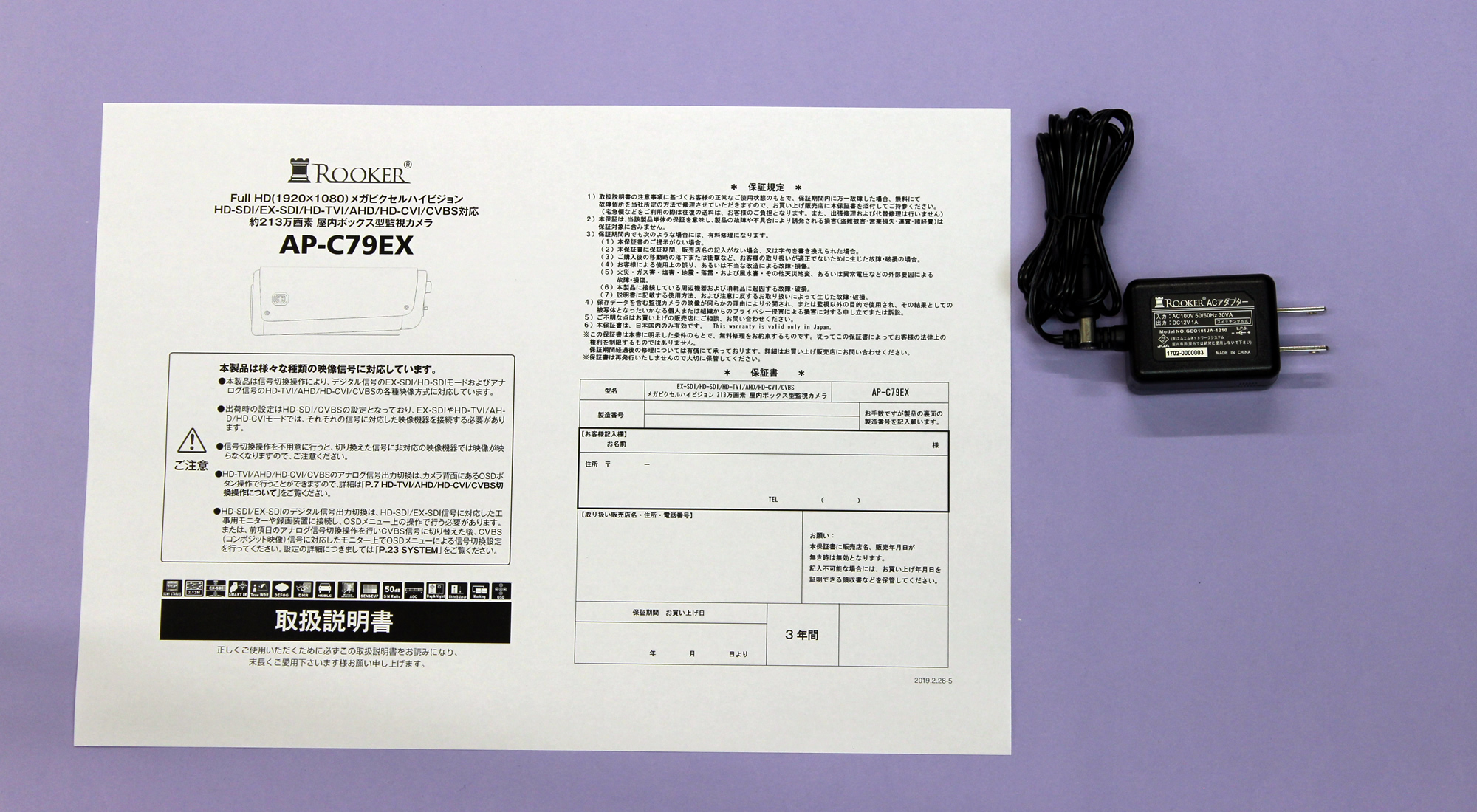 付属品 ACアダプター(DC12V/1A),DC電源ケーブル,取扱説明書,保証書3年間