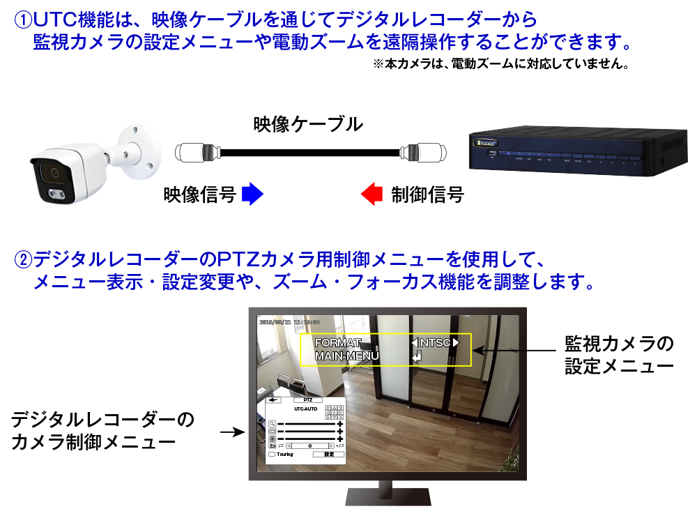 CVI 4MP:30fps/2MP:30fps), 960H(30i)CVBS ※工場出荷時設定はCVBS (960H)