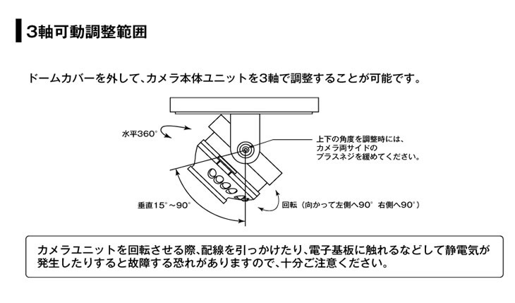 | 白黒 : 0.005Lux/F1.2, 0.0002 Lux /F1.2(電子感度アップx32時) |