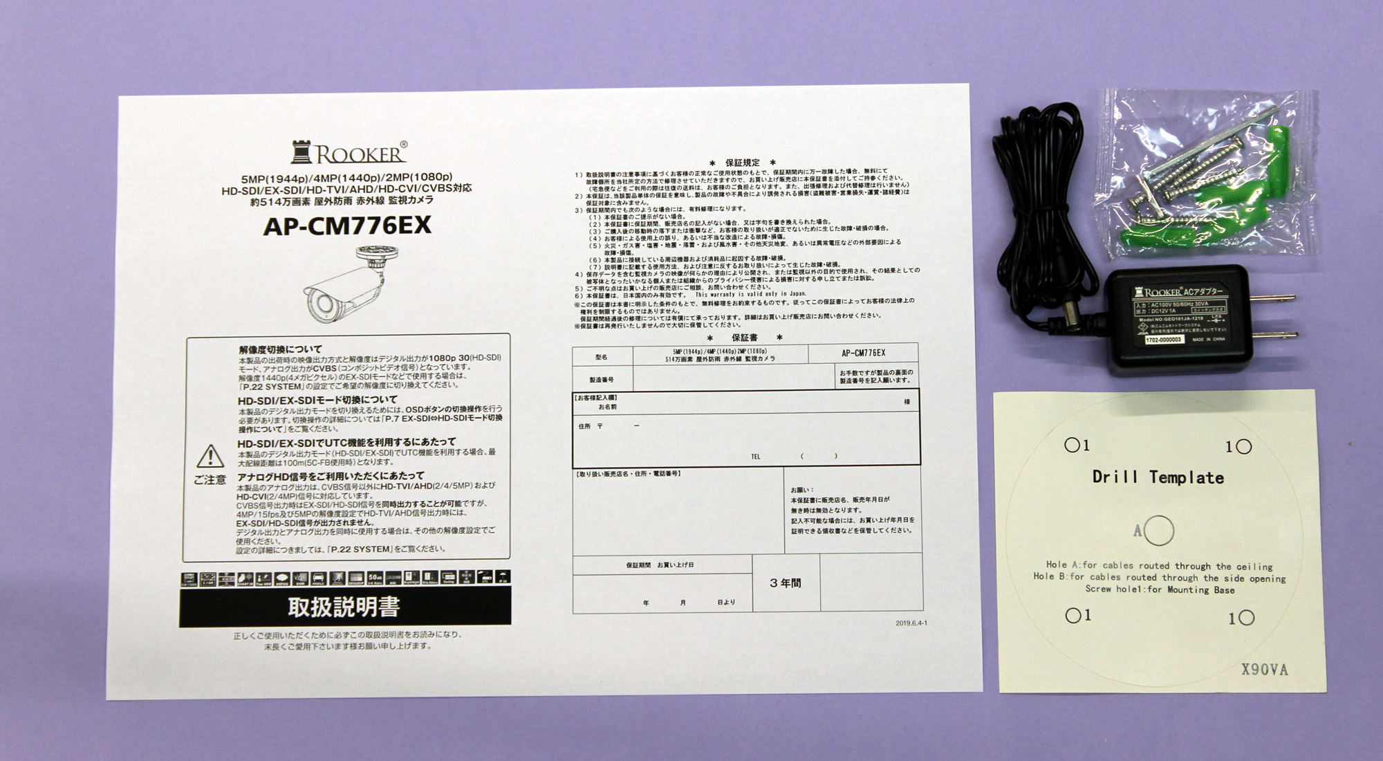 (4)六角レンチ×1 (5)位置合わせシート (6)取扱説明書、保証書3年間