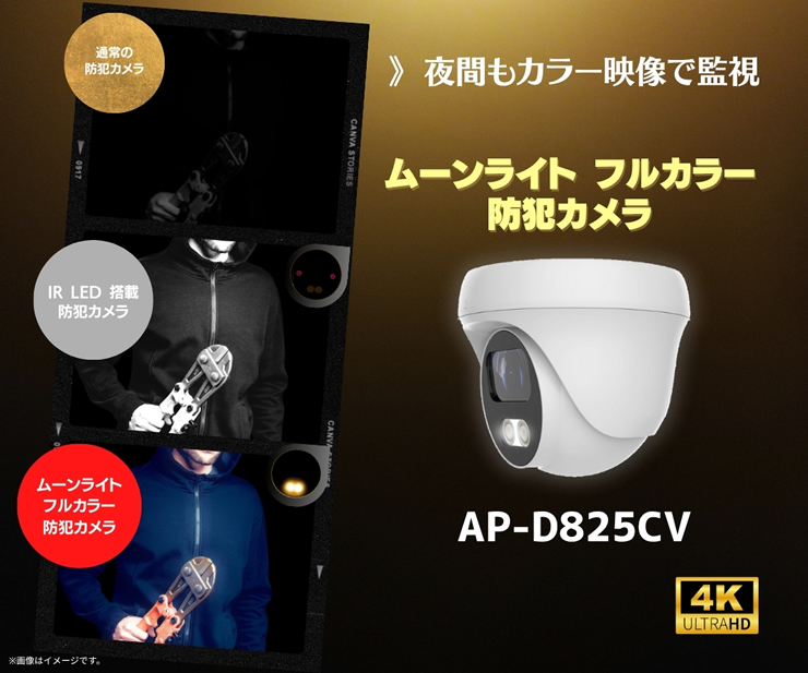 800万画素屋外フルカラードームカメラ【AP-D825CV】ムーンライト機能搭載ページTOPへ戻る▲