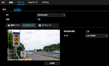 アナログカメラを接続した場合は、人および車両検出機能が利用可能です。