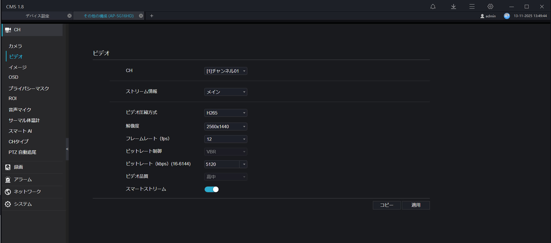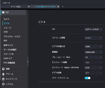 デュアルストリーム (メイン:128 Kbps ~ 4096 Kbps / サブ:16 Kbps ~1024 Kbps) |