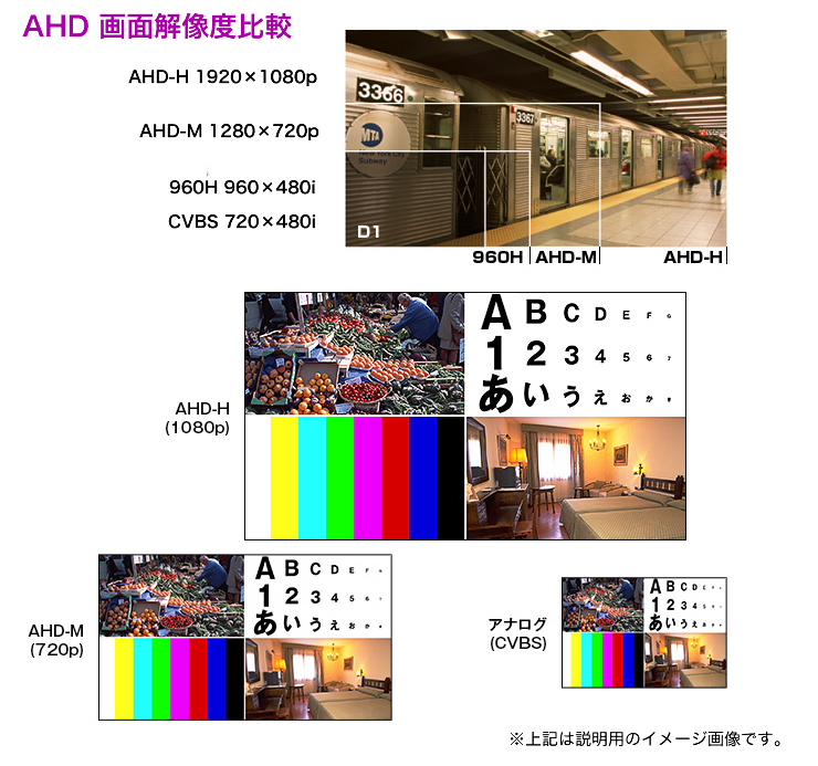 NTSC(AHD(1080p)/CVBS(960H)モード切換対応) |