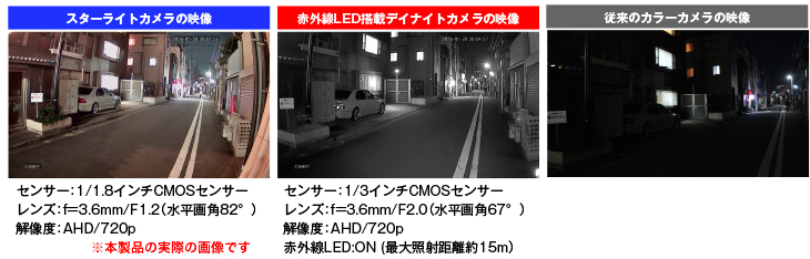 | AP-S500AHDは、夜間など低照度環境下でカラー映像で撮影することに特化し、AHD(720p)出力に対応した130万画素スターライト監視カメラです。 高精細アナログHD(1280×720p) 解像度で映像の撮影が可能。 集光率の高い大型(1/1.8インチ)高感度CMOSセンサーと、大型イメージセンサーに対応した明るい単焦点レンズを搭載しています。 低照度環境下でもカラー映像を撮影すために、従来のようなスローシャッター方式による電子感度アップ撮影を行わないため、動きのある被写体でも動体ブレとノイズ抑えたカラー映像を撮影することが可能です。 | |
