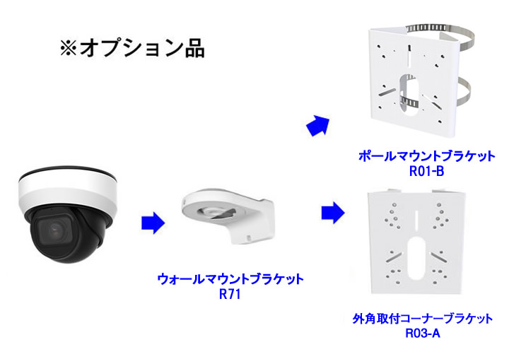 ※カメラへの電源供給は、別途 PoE給電スイッチ またはACアダプター (※要お問合せ)が必要となります。 ※LANケーブル(CAT5e以上)は、別売です。