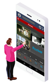 【パソコンから中央集中管理】 CMSソフトウェア(無料)を利用することで、最大128台のネットワークカメラ(最大64分割×2)を、ライブ監視・再生、その他、監視本部で各拠点を効率的に集中して管理することができます。例えば各拠点の支店や店舗に設置したネットワークカメラやNVRを、本社や管理部門で集中管理することが可能となります。 【CMS PCシステム要件】
