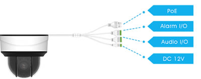 【PoE機能搭載】 200万画素 PTZ ドーム型ネットワークカメラ(RK-260LSP)は、PoE機能を利用して電源を供給することが可能です。 |