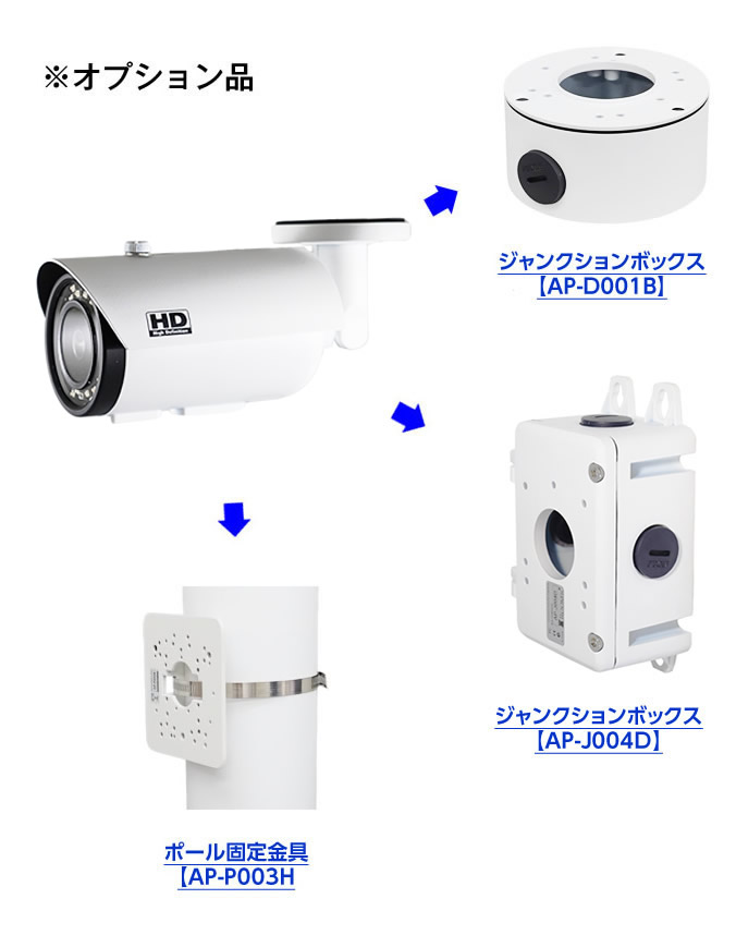 電源重畳出力端子 | BNC-J x 1 ※工場出荷時 AHD 4MP 30p |