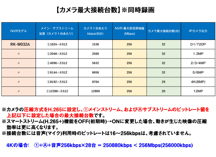本NVRは、5MPネットワークカメラの場合、最大32台の同時録画が可能です。