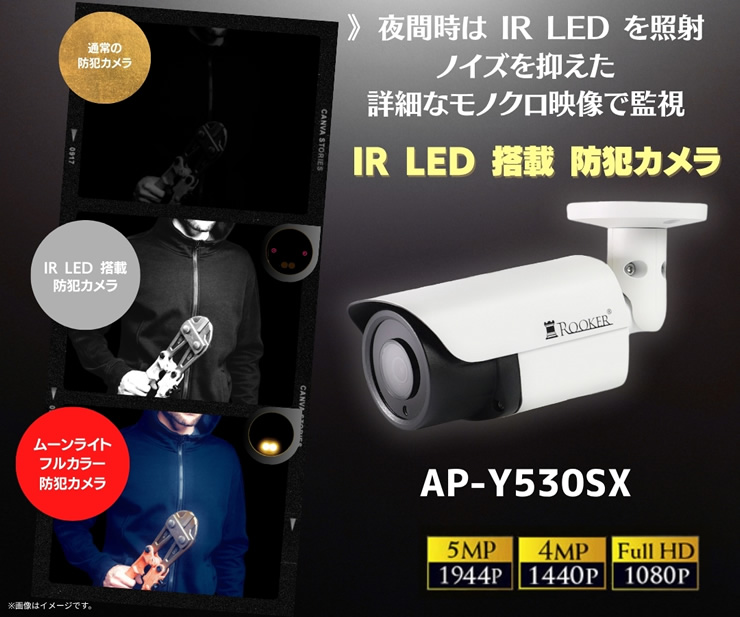 昼間は色鮮やかなカラー映像で、 夜間は自動的に IR LED (最大照射距離25m) を照射して、詳細なモノクロ監視映像を録画することが可能です。