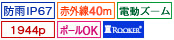 1/2.7インチ CMOSセンサー 赤外線照射距離:最大20m ムーンライト:最大20m ポール固定金具(オプション) 屋外防雨(IP66準拠) 音声マイク(COAX AUDIO)