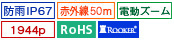 屋外防雨(IP67準拠) 耐衝撃(IK10準拠) PoE(802.3af)